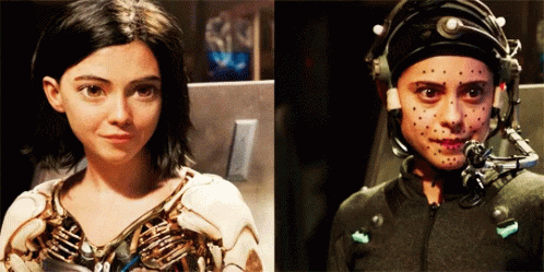 A .gif of motion capture of the actor with the animation complete from the film Alita Battle Angel (2019).