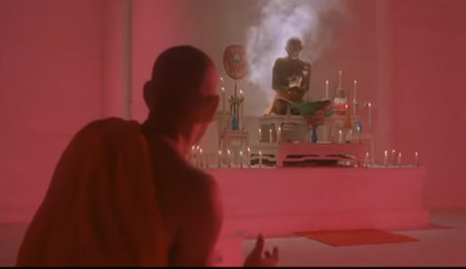 It’s a horror movie that’s more gross than scary with a lot of vomit references. A revenge story that first follows the recently paralyzed boxer combats a cheating Thailand competitor has his promoter/brother seeking revenge when the law and his legal standing can’t proceed to do anything. He seeks supernatural justice from black magic in Thailand only to be sidetracked by a Buddhist temple seeking him out revealing that he is his deceased twin brother from another pass life. But when his twin tells him that he will die too if his corpse decomposes. Therefore, the promoter becomes a monk to save his brothers from evil forces. One side fights real dirty, dark magic and trickery when the other side uses reason, light and martial arts. The colourful aspects of the film come from the use of black magic disorienting the view showing the manipulation and the bright saffron light from the monks.