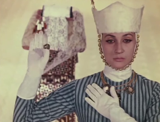 The lead actor is Sofiko Chiaureli who portrayed several characters in the film, for example, she was the poet and the love interest in the third act. This was inspired by Persian miniature paintings that had couples with similar features and faces in paintings. The actor’s performance was understated but never looked out of place. This is also something to notice in other viewing of the film that it’s the same actor almost throughout the whole film. The costuming and makeup help disguise the actor in the character very well.