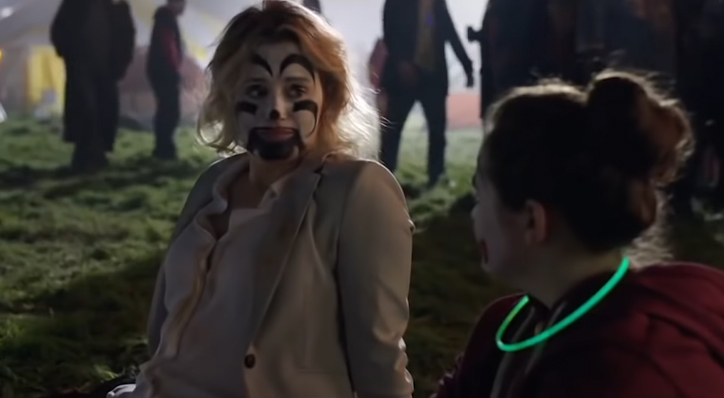 Screenshot of Kate painted up has a Juggalette talking to Cheryl