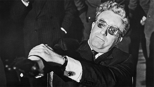 Dr. Strangelove (Peter Sellers) trying to control his arm.