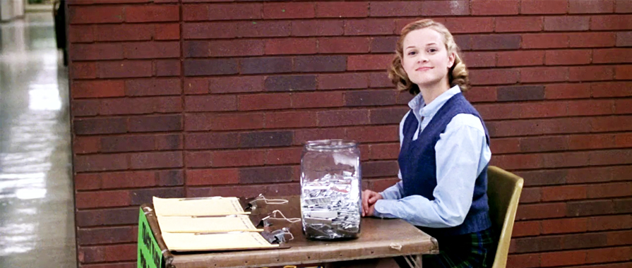 Tracy Flick (Reese Witherspoon) fundraising at school.