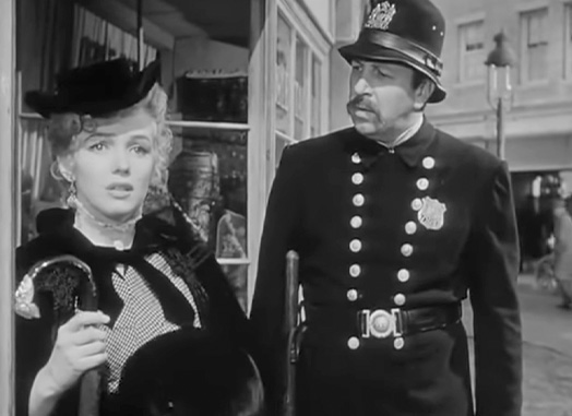 Screen shot of O. Henry’s Full House (1952). A woman astonished at a comment with an officer looking on.