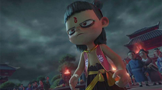 Screenshot of Ne Zha (2019). Ne Zha facing down a visible enemy.