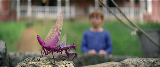 This seems like a movie that special effects-heavy throughout each scene of the film. The movie has plausible effects when it’s a background feature like moving trees, the pile of alpacas, the room of the groundskeeper after the light affected him. They don’t look garish or too much like a video game animation. The atmosphere the light creates is also interesting. Through a grasshopper’s eyes, we see how things affected to see the world. It’s almost a purple solarised / bad monitor view. When the force is in the air, the fog changes colours. When the light was close to divulging the things around, the light changed the perception of light from pacing, RGB light lining up, odd shadows and bleaching white light. It’s freaky but cool and scary at the same time.