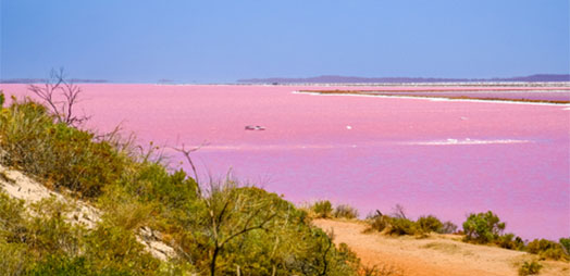 A saline lake on the edge of Middle Island off the south coast of Western Australia. The lake was discovered in 1802 by British Navigator and Cartographer Mathew Flinders on the HMS Investigator. He saw the lake as the pink hue body of water that it is known as today. The pink colour is considered to be due to the presence of the organism Dunaliella salina and Halobacterium cutirubrum. Dunaliella salina is a type of algae growing in the lake which contains carotene giving the algae the bright pink colour. Halobacterium cutirubrum is a type of ocean bacteria with a high concentration of halophilic archaebacteria. There is a large sign near the lake that describes why the water is pink, too.