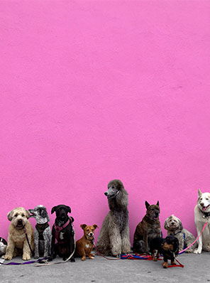 Photo of the Paul Smith Pink Wall with dogs sitting in front of it. Source: Photo by BUMIPUTRA on Pixabay