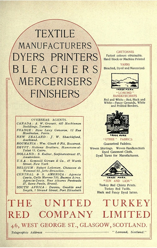 Poster for The United Turkey Red Company Limited c. 1920, artist unknown, public domain.