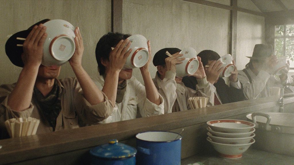 Screenshot of Tampopo (1985). The patrons finally have Tampopo’s new ramen dish.