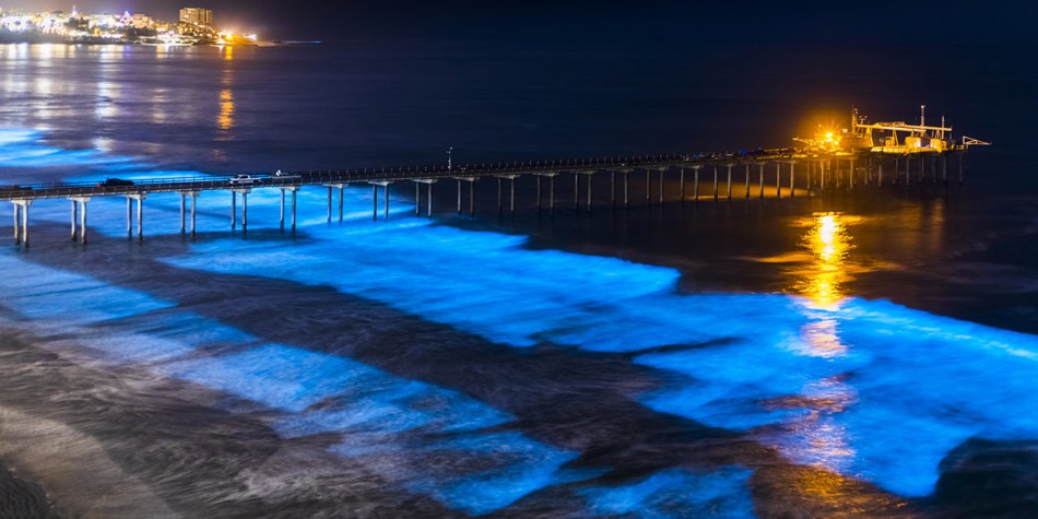 Banner Credit: ID 186177646 @ Kevin Key | Dreamstime.com “Bioluminescent tide makes the waves glow blue around the Scripps Pier in La Jolla, California. Bioluminescent algae blooms like the ever-popular dinoflagellate marine algae called Sea Sparkle are most frequently observed away from shorelines. Though beautiful in the dead of night, during the day these blooming phytoplankton are less than stunning. They often turn ocean water red and murky, and emit a distasteful smell of decay that comes from the algae starving the water of oxygen.” – Kevin Key